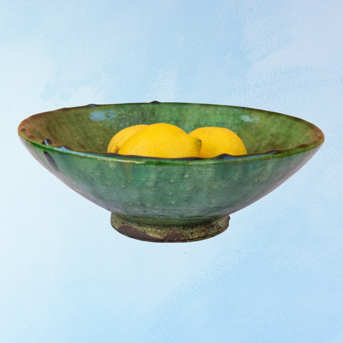 Handcrafted Moroccan Tamegroute Green Glazed Bowls