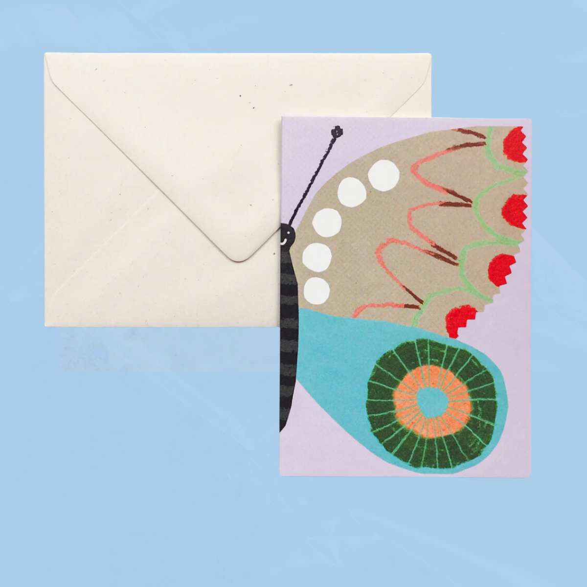 A greeting card featuring a beautiful butterfly on a lilac background. Guaranteed to put a smile on the face of the recipient.