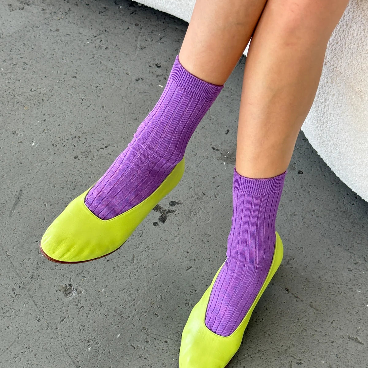 The original sock that started it all! Her Socks check off all the boxes for the perfect all-around pair. Made of a breathable cotton-blend, they boast a silk-like sheen that elevates any look. With classic ribbed details and a quarter-crew length, they effortlessly complement any outfit.