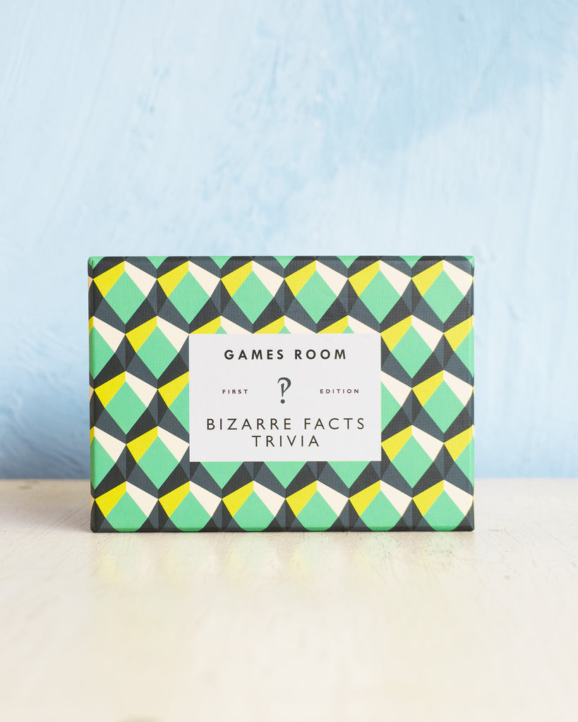 The bizarre-er the better with this Bizarre Facts Trivia from the Games Room collection. There are 140 quiz cards to test your knowledge of the unusual and absurd! A fun and factual game to play with friends. Presented in a stylish geometric print box.