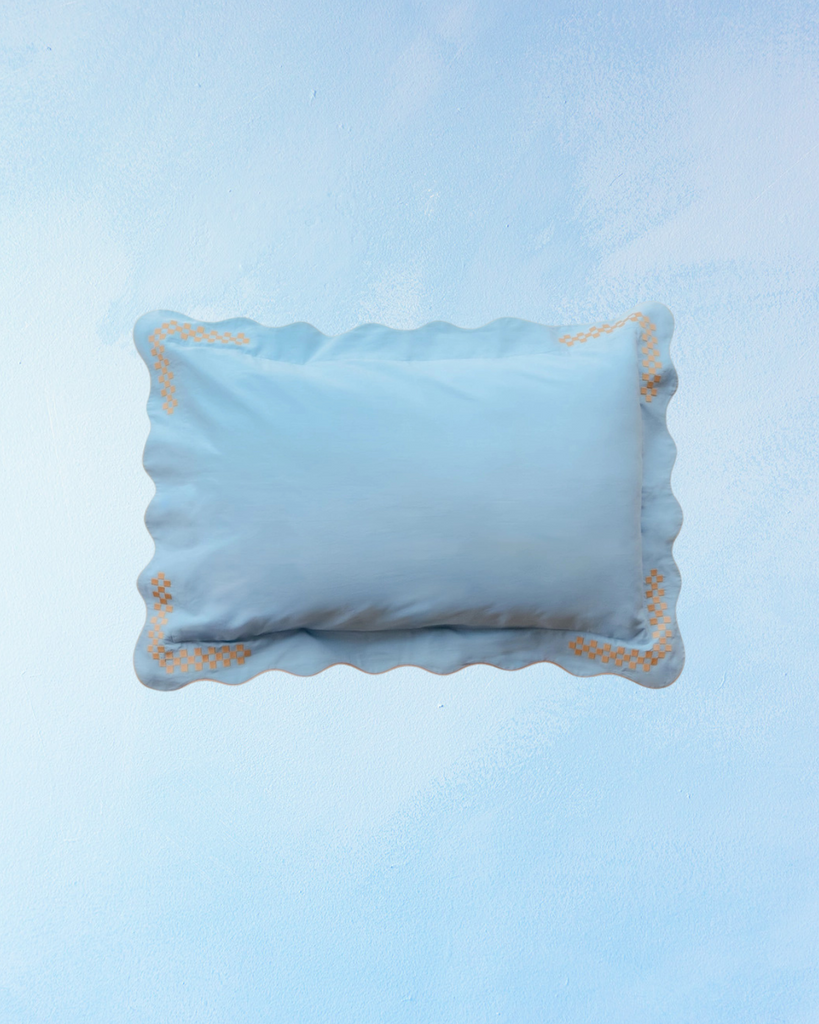 bedding - pillowcases: blue cotton linen