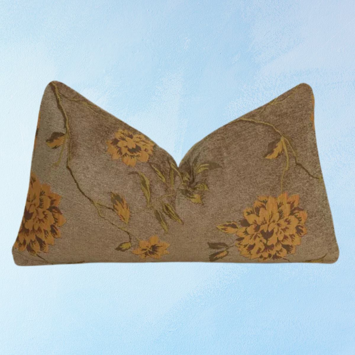 You get two pillows in one: one side is a beautiful, muted brown with a rich floral tapestry design, which reverses into a golden ochre floral design with velvet gold piping. This romantic pillow echoes the allure of vintage paintings and tapestries, with exquisite details that will surely captivate all of your guests.