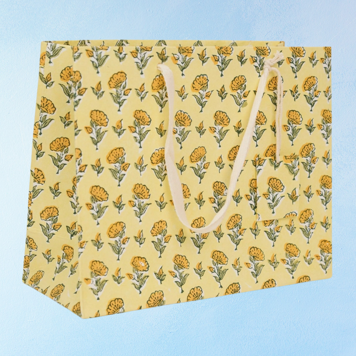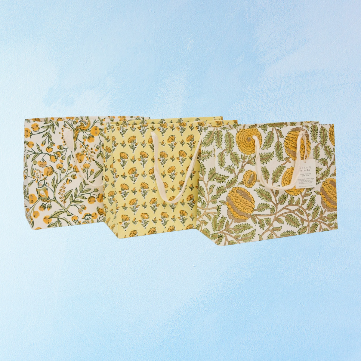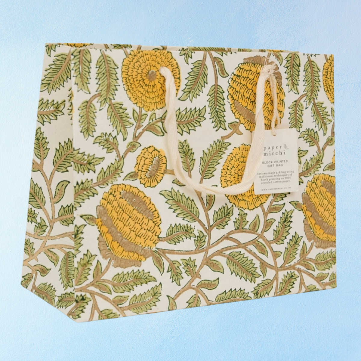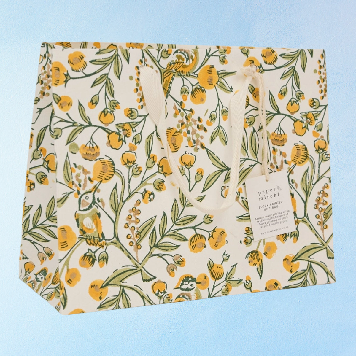 So you've found the perfect gift, now you just need to wrap it! The hand block printed gift bags are made from high quality, recycled paper material (so you can feel good about adding to your stash). Complete with cotton rope handles for easy carry. Go on, they deserve it.