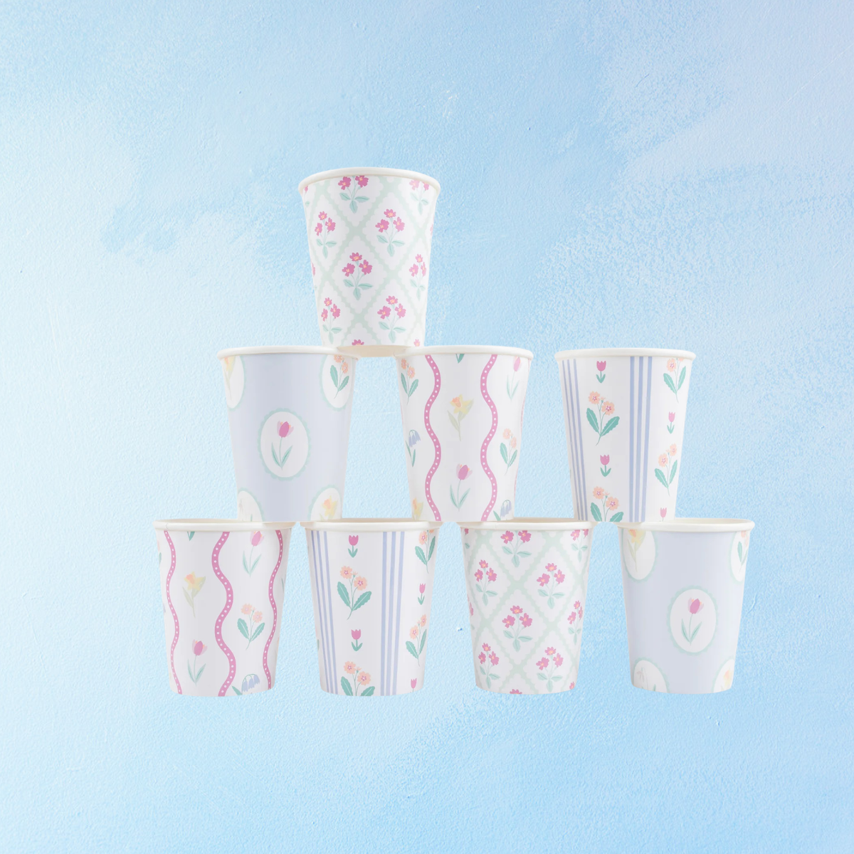 Decorative and practical, these paper cups are inspired by vintage floral designs and add the perfect touch of pastel to dinner celebrations, birthdays, and tea parties.