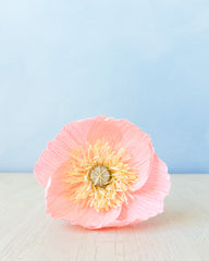 This pink paper poppy is too pretty for words! And yet we try. Handmade in Ukraine from fine Italian crepe paper, this queen looks beautiful alone or in a bouquet.