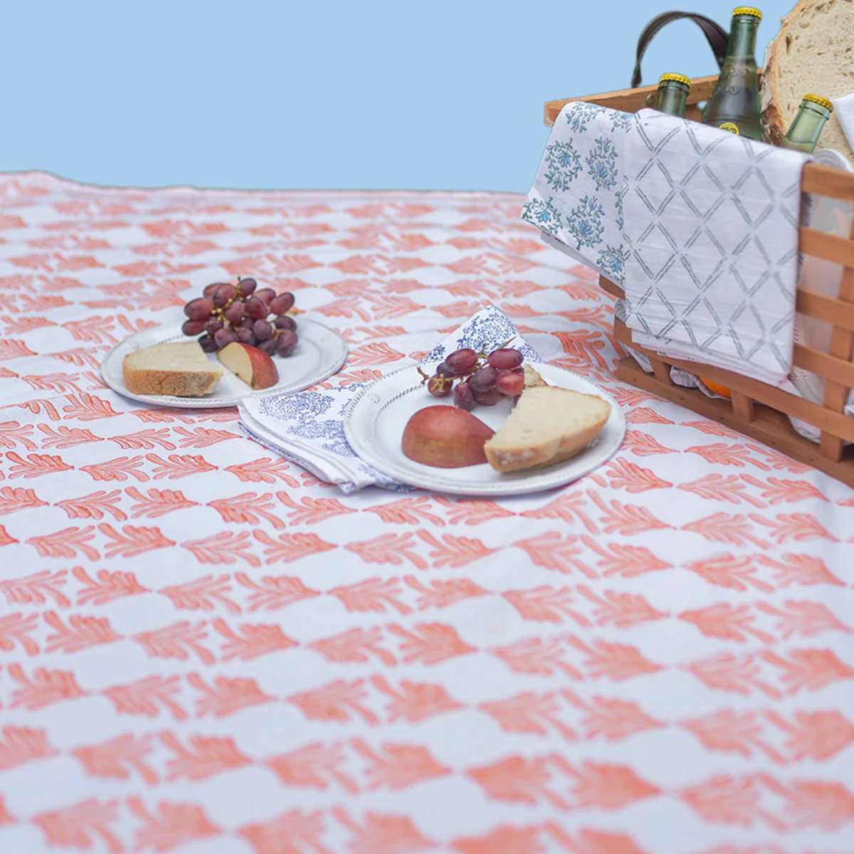 Add fresh design, colours, and textures to an everyday table with the help from this block printed tablecloth.