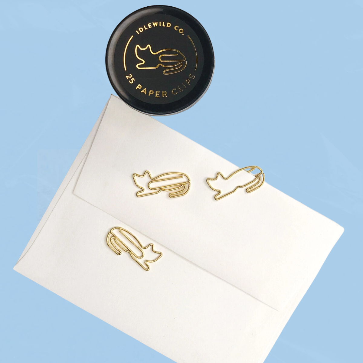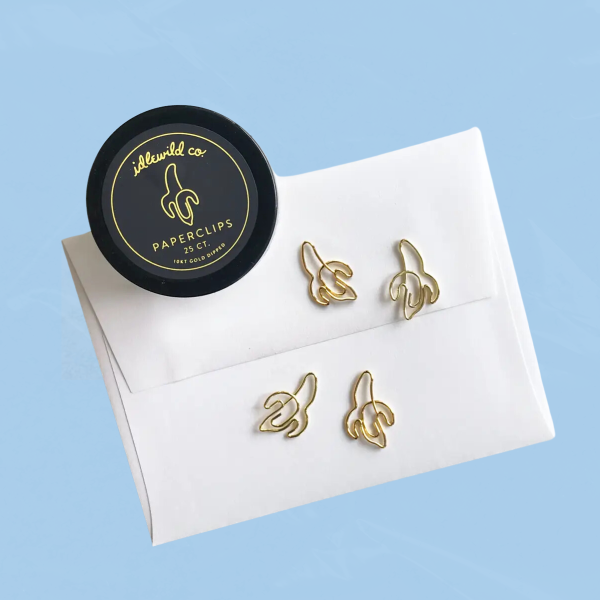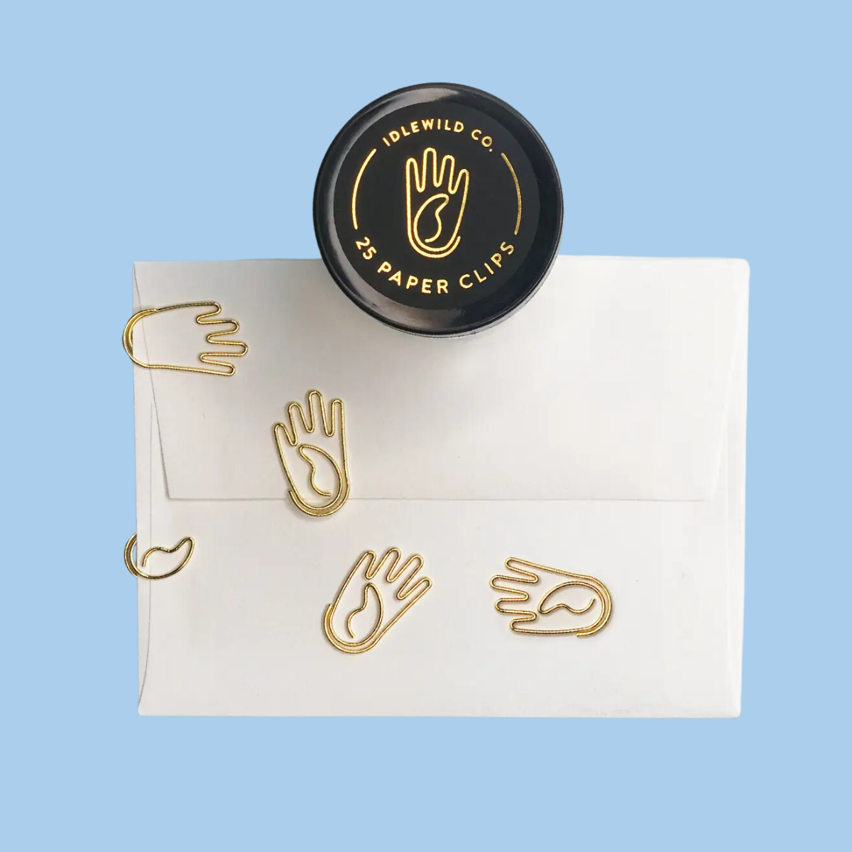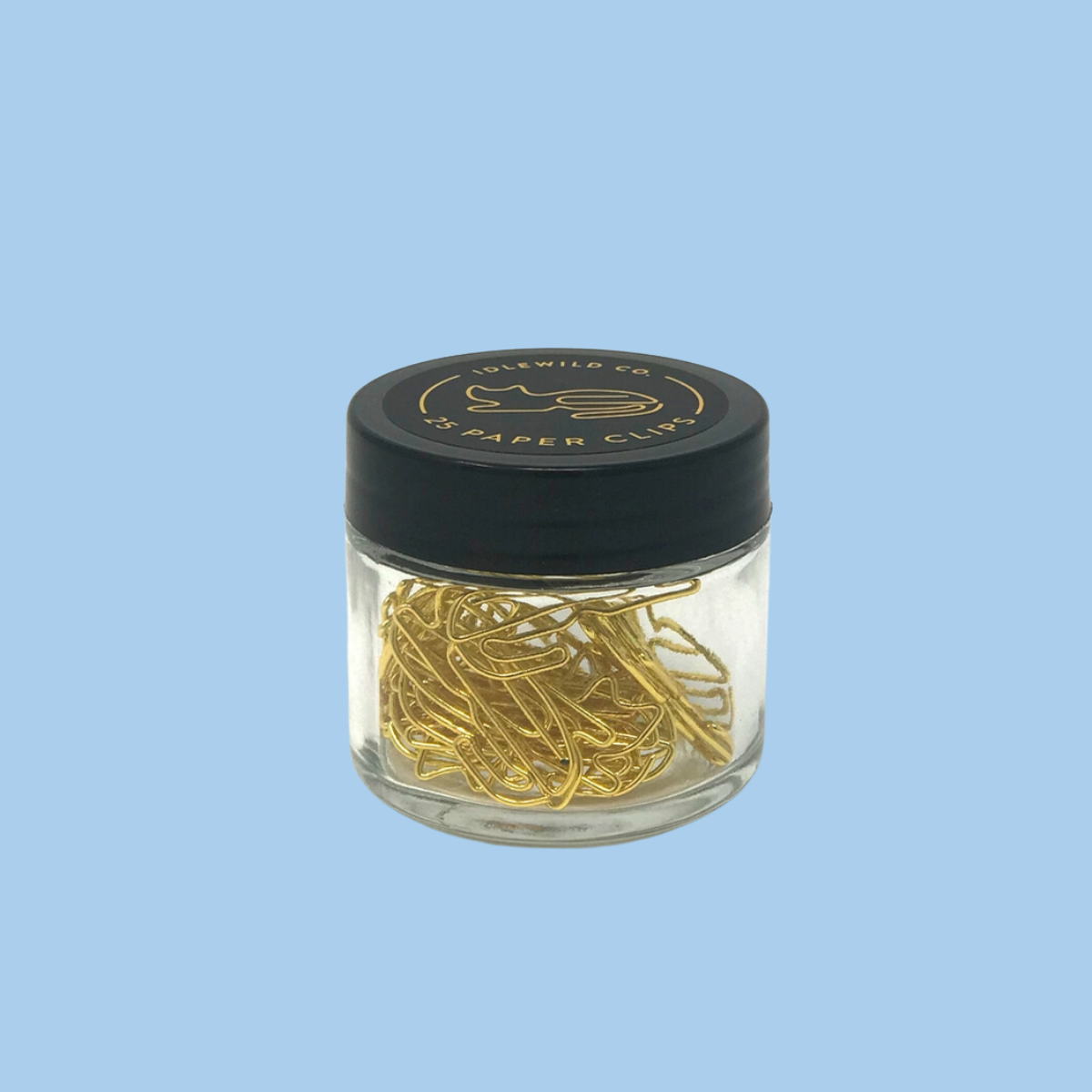 Small glass jars are filled with 25 gold clips to dress up your desk, homework, bills, planners–anything you can think of!