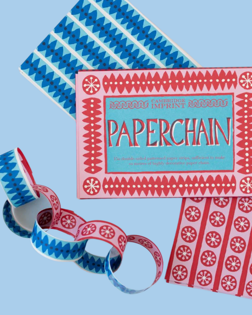Decorate your space and craft at the same time with this paper chain kit. Featuring 150 strips of double-sided patterned paper contained in a self-closing card wallet, it assembles to make a 10 metre chain of highly decorative garland.